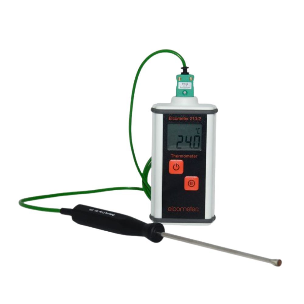 Temperature gauges can either be contact surface temperature gauges, or temperature gauges with a number of different probes than can measure ambient temperature, surface temperature – either with a magnet or without as well as liquids. The probes are K-type thermo-couples which plug in.