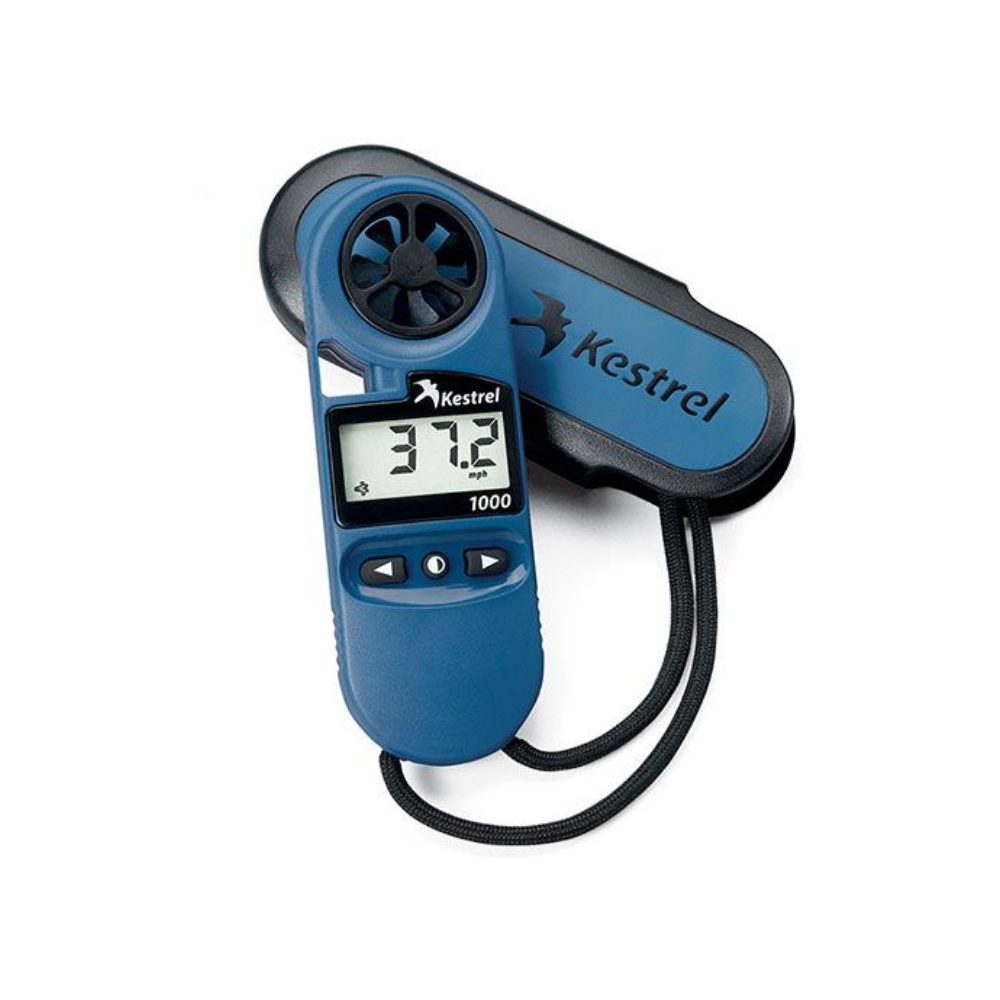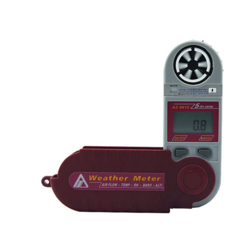 8910 Anemometer: Compact pocket-knife design that measures wind speed, temperature, wind-chill, humidity, dew point, heat index, barometric pressure with storm warning, and altitude. Includes 16-hour pressure trend chart, storm alarm, max readings, replaceable lithium battery and impeller, water/shock-resistant housing and low-battery indicator.