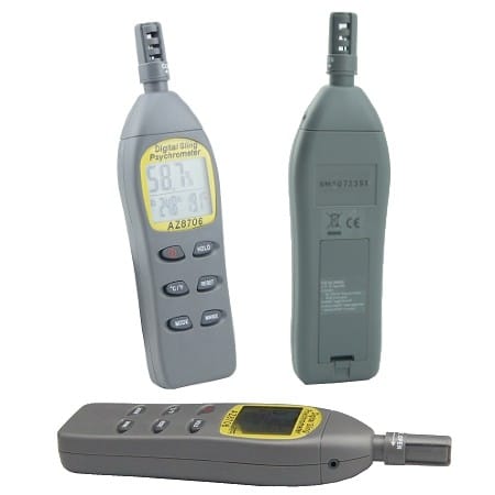 The details for the Elcometer 319 are covered in the Climate Condition Monitor section. The 8706 Hygro Thermometer is one of our more popular models due to the fact that it is competitively priced and it gives you ambient temperature, relative humidity RH, Dew Point, Wet Bulb and Dry Bulb. It also has the option of a plug in liquid probe.